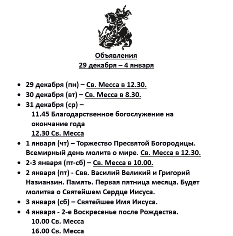 Объявления на 29 декабря - 4 января